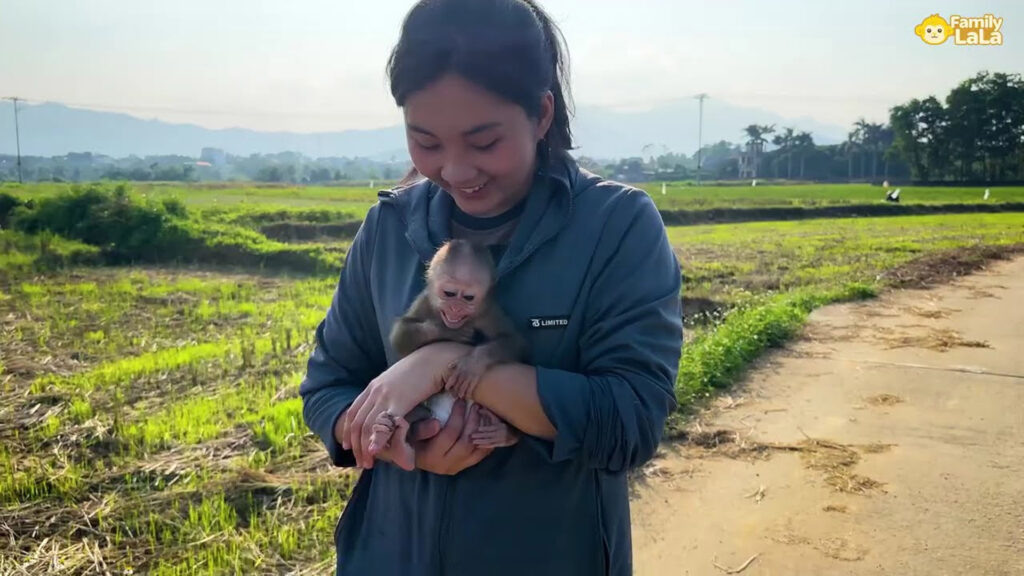 After a little cuddle and some banana slices, Lala’s spirits quickly lifted. She even pointed back at the stool, making a funny face as if to say, “That naughty thing pushed me!” Everyone laughed, and soon the two monkeys were back to playing, this time under closer watch.