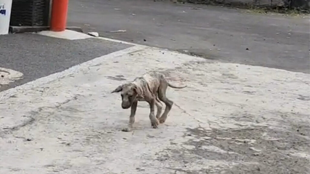 He was just a thin, scruffy dog wandering through the streets, his ribs visible beneath matted fur. Each step he took seemed heavy, his paws cracked from walking on hot pavement day after day. His eyes—once bright and full of life—were now dull, reflecting hunger and exhaustion. He would stop near small food stalls, hoping someone would drop a crumb, a bone, anything. But most people turned away, wrinkling their noses or shooing him off with harsh words.