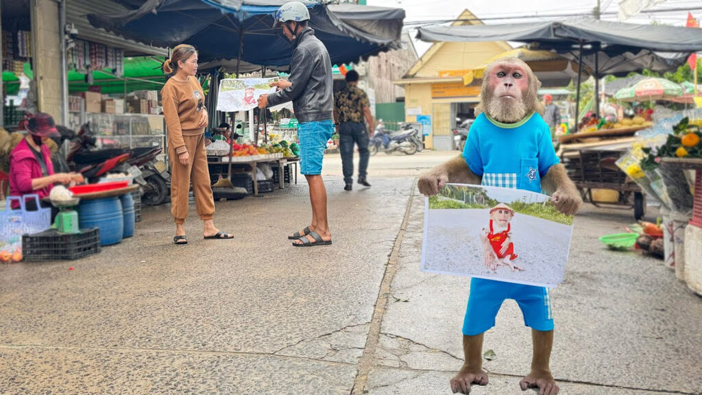 Soon, the whole CUTIS family was out on the streets. They searched the garden, the forest path, even near the riverbank where Baby Monkey sometimes played. CUTISâs ears perked up whenever he heard a sound, and his tail wagged hopefullyâbut each time, it turned out to be nothing. Still, no one gave up. The family wandered through the village, asking neighbors, showing pictures, and calling out softly, âBaby Monkey! Where are you?â