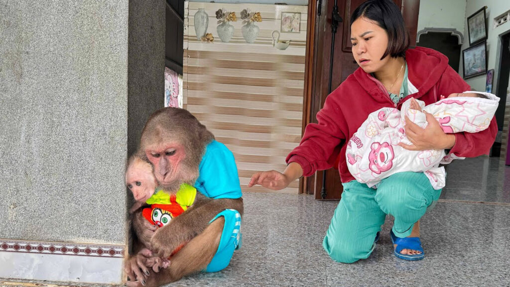 Mom knelt down beside them, her eyes soft with regret. “I’m sorry, my loves,” she whispered gently. “Mom didn’t mean to make you sad. I just got a little too tired.” The baby monkey looked up, blinking through tiny tears, while CUTIS slowly crawled into Mom’s lap. In that moment, all the sadness melted away.