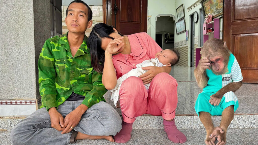 When dawn broke, Mom Cutis’s eyes were swollen from crying. Dad Cutis comforted her gently, promising that they would find him no matter what. They asked the neighbors for help—dogs, cats, and even the kind people around the area joined the search. Everyone worked together, scanning the fields, riversides, and trees. But 24 hours later, there was still no trace of their beloved little monkey.
