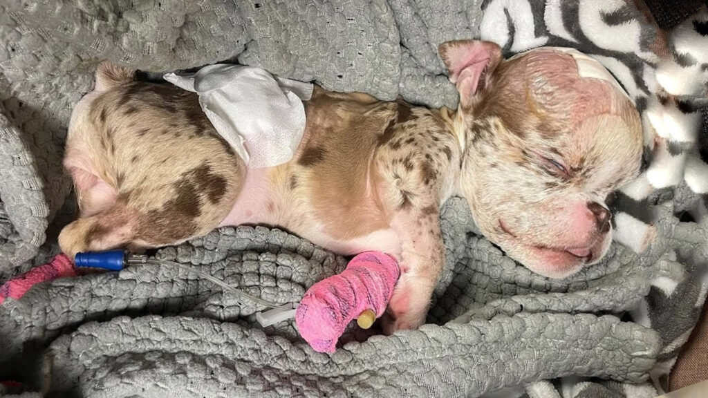 He had clearly been abandoned for days, surviving only on rainwater and scraps. Every breath he took was a struggle, but his spirit refused to give up. When the rescuer wrapped him in a towel, the little puppy pressed his head into their chest, finally feeling warmth and safety for the first time in his short life. It was as though he knew—this was his one chance to live.