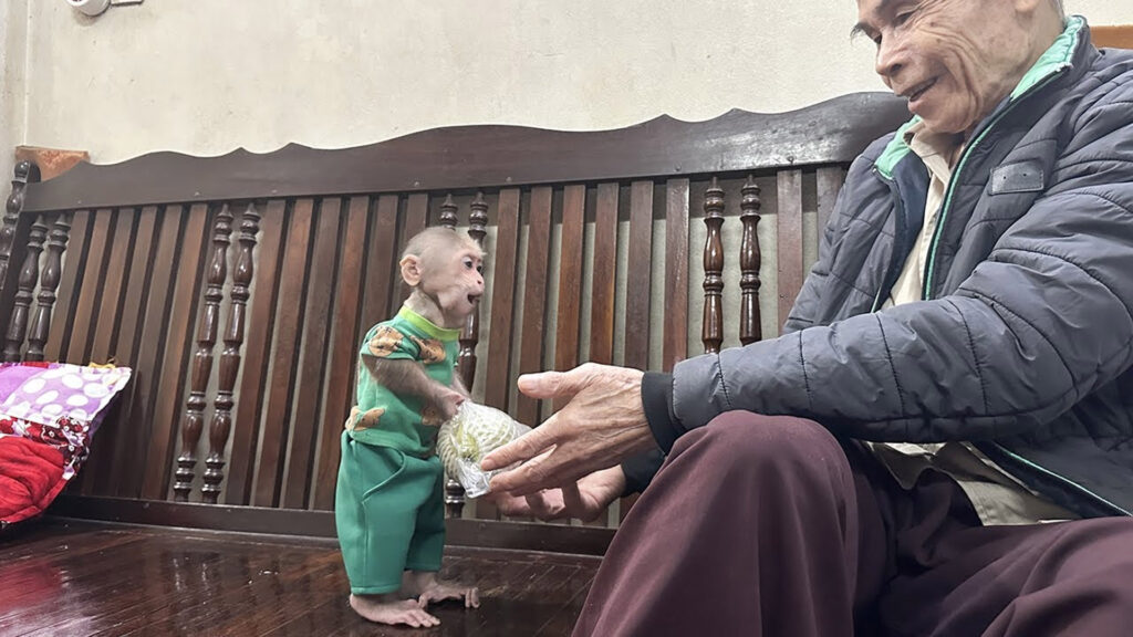 The neighbors couldn’t stop smiling. They patted her head, thanked her warmly, and told her she was the sweetest little monkey they’d ever met. Lala’s heart swelled with happiness. When she returned home, tired but proud, Dad hugged her and said, “You didn’t just share fruit, Lala—you shared kindness.”