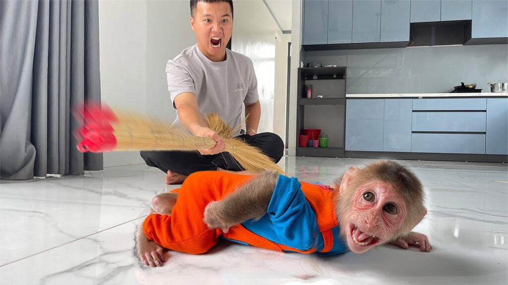 There, standing in the middle of the mess, was Cubis—the mischievous little monkey—with chocolate smeared all over his mouth and a guilty look in his eyes. On the floor lay the remains of Dad’s freshly baked cake, the one he had made for the guests coming that evening. Plates were broken, crumbs were everywhere, and the refrigerator door was wide open.