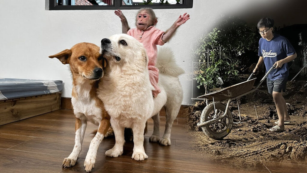 It was a bright morning on the family farm, and Dad had a busy day ahead. The renovation project was finally underway—new fences, repaired sheds, and fresh paint everywhere. But what Dad didn’t expect was a team of “supervisors” eager to oversee every single move: Lala, Bon, and Ni, the trio of playful monkeys who thought farm work was their new favorite game!