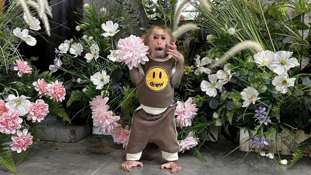 As soon as they arrived, Lala’s eyes widened in excitement. The café was full of soft music, the gentle hum of conversation, and the sweet aroma of fresh fruit. Lala sat proudly beside Dad, her tiny hands folded on the table like a polite little lady. Everyone couldn’t help but smile seeing the elegant monkey behaving so well.