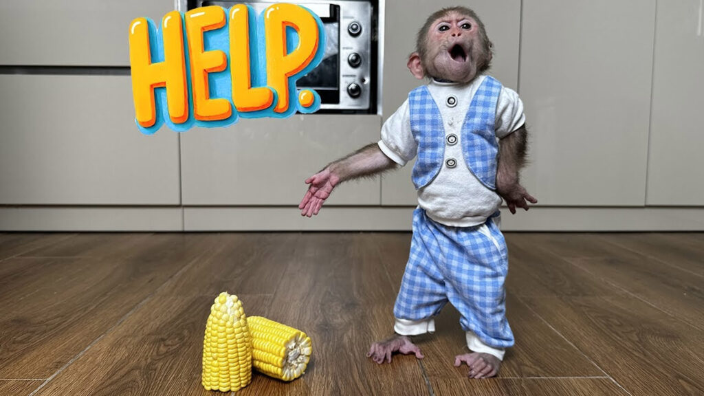 The cameramen couldn’t resist her charm. They followed her dramatic gestures as she repeated her “orders,” pointing, squeaking, and even tapping the pot as if saying, “Hurry up—I’m hungry!” One cameraman started boiling water, while another husked the corn. Lala supervised carefully, standing on her tiptoes, sniffing the air, and watching every move with the importance of a chef inspecting her kitchen.
