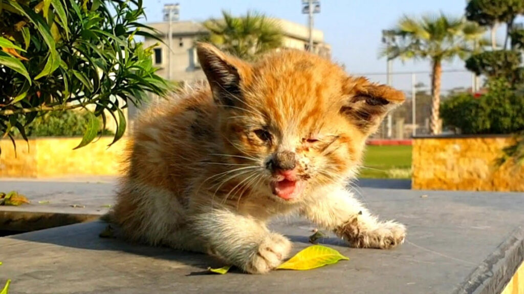 The little kitten was no more than a few weeks old, a tiny ball of fur trembling on the edge of a busy road. Cars roared past without slowing, wind pushing its fragile body each time a vehicle rushed by. Its eyes were barely open, cloudy with exhaustion and fear, and every shaky breath carried the silent hope that someone—anyone—would notice it.
