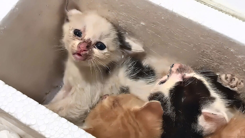I still remember the night I found them, tucked behind a broken fence at the edge of an abandoned lot. Their cries were faint, trembling, almost too weak to hear—but something inside me pushed me to look. There, hidden under a torn cardboard box, were five tiny kittens, shivering, bruised, and starving. Someone had abandoned them in terrible condition. My heart broke instantly.