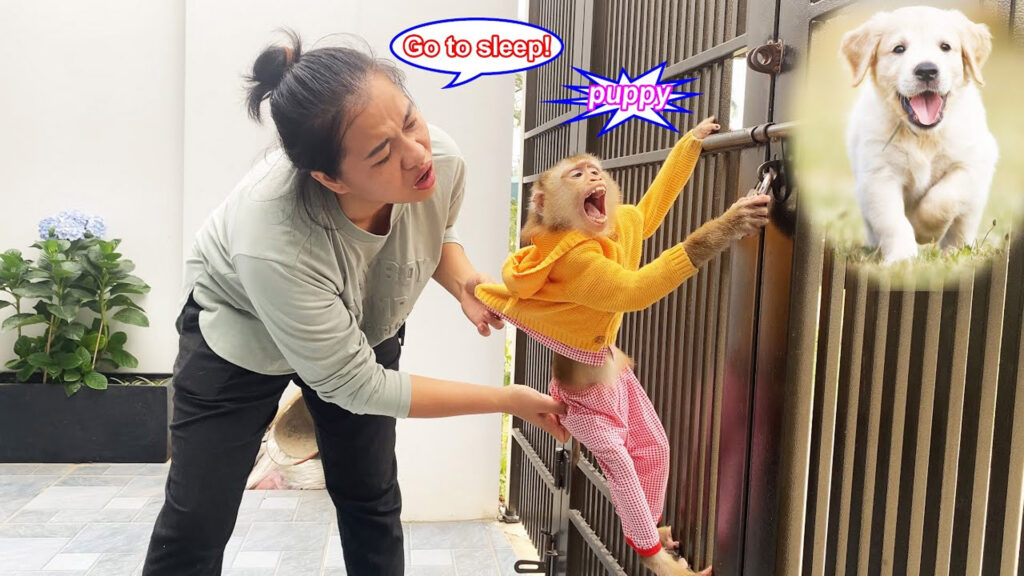 I Can’t Help but Laugh! Monkey Lyly Gets Restless When She Hears the Neighbor’s Puppy Making Noise