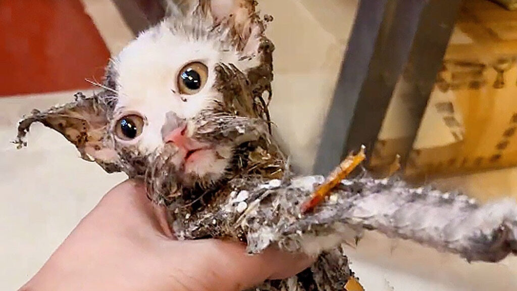 When I first heard the faint, desperate cries coming from the trash bin behind the apartment building, I thought it was just a hungry stray looking for scraps. But as I got closer, the sound grew sharper—panicked, helpless. I lifted the lid, and my heart dropped. Inside, a tiny cat lay completely stuck on a large glue trap, unable to move even an inch. Her fur was matted, her eyes wide with fear, and she trembled with every breath.
