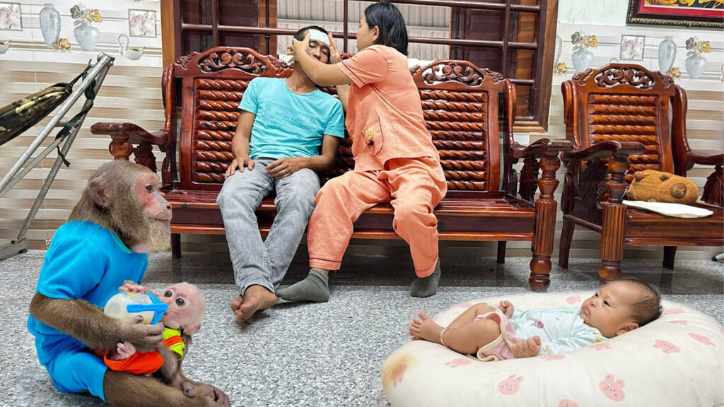 Every morning, he followed Mom from room to room, watching carefully and mimicking her actions. When Mom prepared warm herbal tea for Dad, Cutis carried the spoon, tapping it gently against the cup as if checking the temperature himself. When Mom wiped Dad’s forehead with a warm cloth, Cutis climbed up beside her, placing his tiny hand on Dad’s arm as a sign of affection.