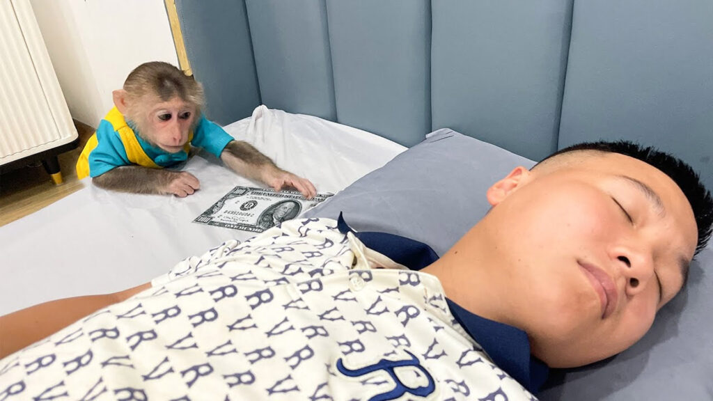 While Dad was busy sweeping the front yard, Cubis tip-toed into the bedroom with exaggerated sneaky steps, glancing around like a tiny detective. Dad’s wallet sat on the table, completely unguarded. Cubis’ eyes sparkled. “Just one tiny bill,” he whispered to himself. With his little hands trembling with excitement, he slipped out a crinkled note and tucked it under his armpit, puffing his chest proudly. He thought he was the smartest monkey in the world.