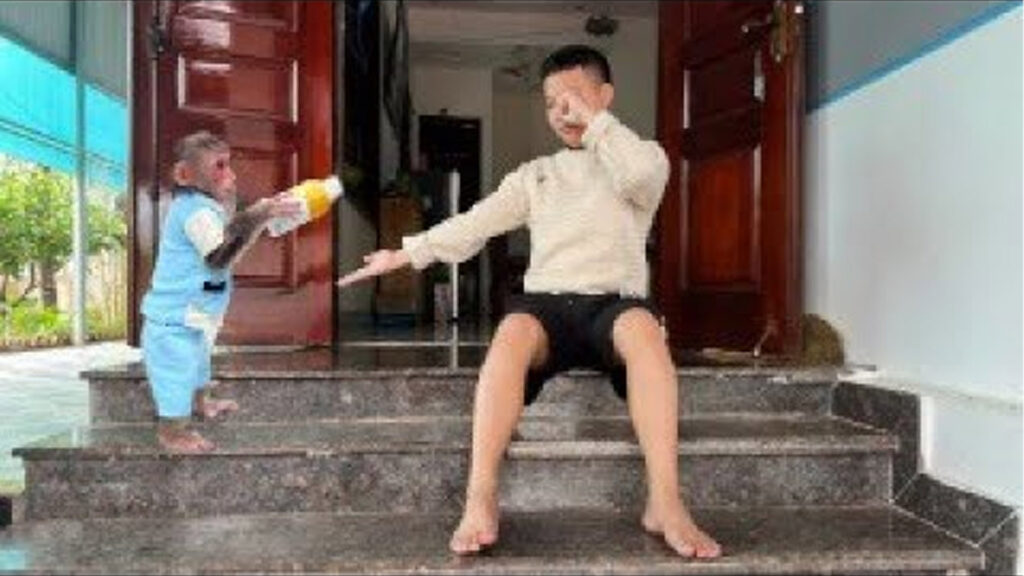 That afternoon began like any other, quiet and ordinary, until Monkey Cubis decided to do something no one expected. Dad was sitting on the porch, looking tired after a long day of work. His shoulders were heavy, and his eyes stared far into the distance. Cubis noticed everything. With his sharp little eyes and caring heart, he could sense that Dad needed comfort.
