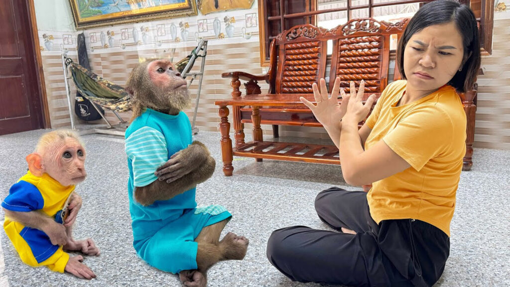 She walked closer, studying them carefully from head to toe. No scolding. No laughter. Just a quiet, serious look that made both of them nervous. CUTIS tried to break the silence with a playful grin, even performing one of his silly tricks, but Mom didn’t respond. BuEm whispered something softly, unsure of what they had done wrong.