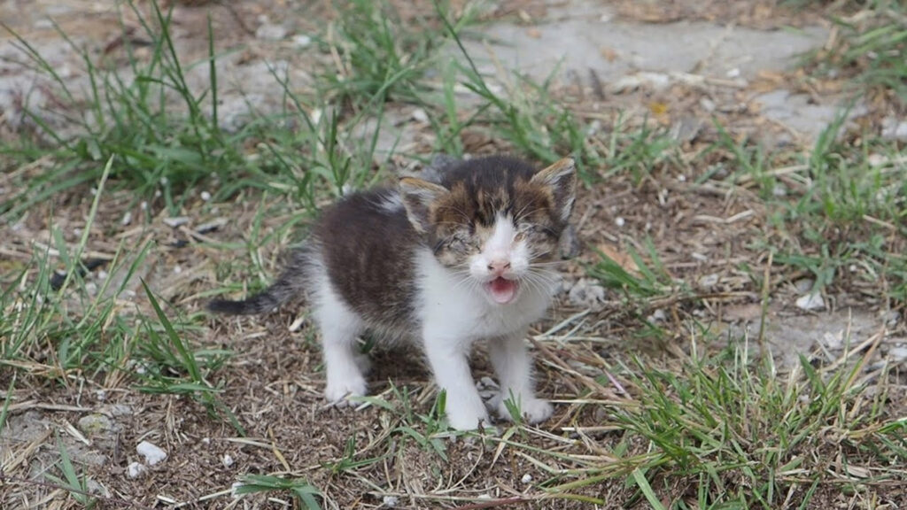 Her cries were barely louder than the wind, thin and broken, like they might disappear at any moment. Hidden beneath a pile of wet leaves, the tiny kitten lay curled in on herself, blind and sick, her small body trembling with every breath. She couldn’t see the world around her, but she cried anyway, hoping someone—anyone—would hear.
