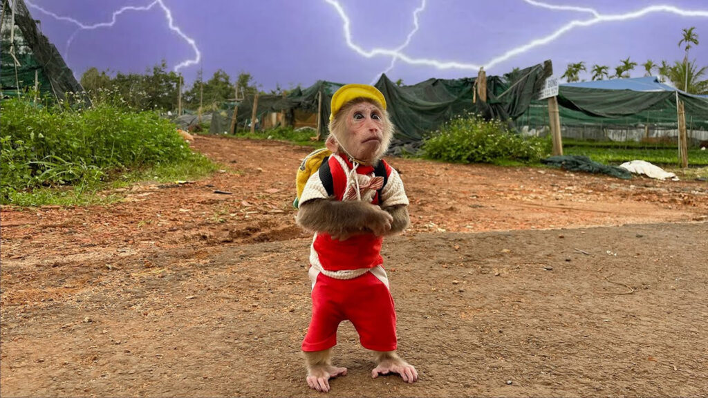 But fun doesn’t last forever. When Cubis tried to climb higher, he slipped and landed in a muddy puddle. His fur was dirty, his hands were shaking, and suddenly the world felt much scarier than before. Loud motorbikes passed by, and strange dogs barked nearby. Cubis’s heart raced. That was when he realized how dangerous it was to go out alone.