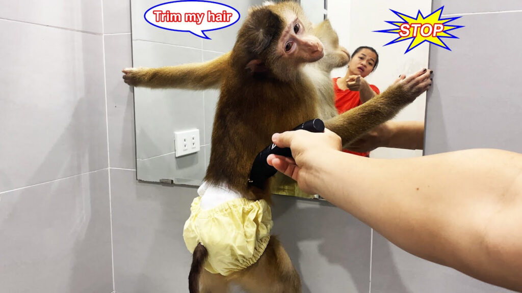 Lyly the monkey had been unusually restless all morning. She sat in front of the camera, scratching her fluffy fur and staring directly at the cameraman with wide, expressive eyes. Every time he tried to adjust the lens, Lyly would lean closer, tilting her head and pointing at her fur as if to say something important. It didn’t take long before he realized—Lyly wanted a haircut.