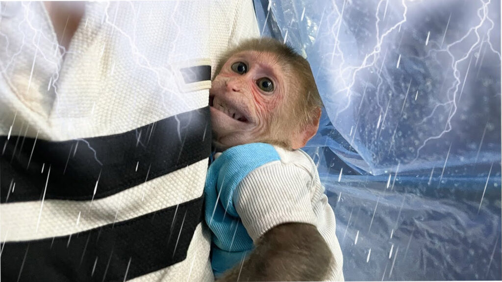 Too Dangerous! Cubis Monkey Encountered Heavy Rain on His Way Home!