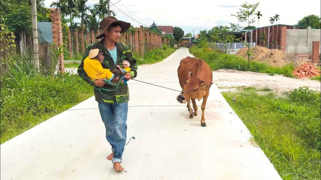 He dashed through the grass, branches brushing past his face, calling out loudly for Dad. His voice echoed through the forest, filled with urgency and fear. Dad was nearby, gathering firewood, when he heard the desperate cries. The moment he recognized the baby monkey’s voice, he dropped everything and followed the sound.