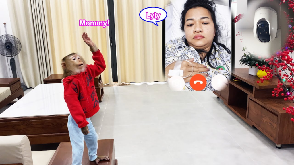 The house was quiet that afternoon, a little too quiet for Monkey Lyly. She sat on the floor clutching her favorite toy, her eyes wandering toward the doorway again and again. Mommy hadn’t been around all morning, and Lyly’s small heart felt uneasy without her familiar presence.