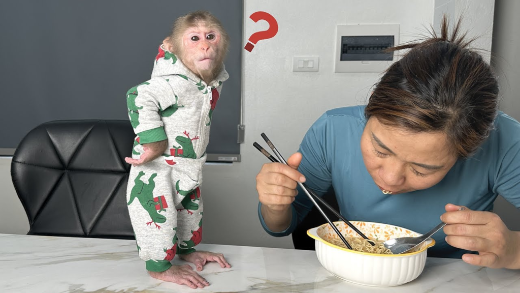 Not giving up, Lala tried a third strategy—distraction. She pointed excitedly toward the window and shouted, “Grandma, look!” The moment Grandma turned her head, Lala lunged for the noodles. Unfortunately for her, Grandma turned back just in time. The room filled with laughter as Lala froze mid-reach, looking completely guilty.