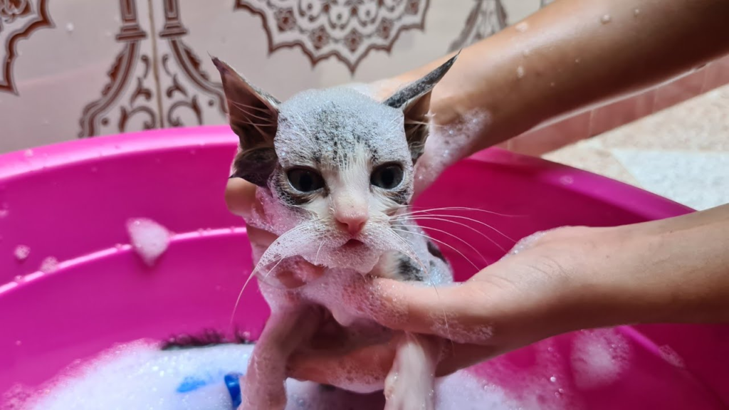 First Time Bathing a Kitten šŸ¾šŸ› | You Won’t Believe Her Reaction!