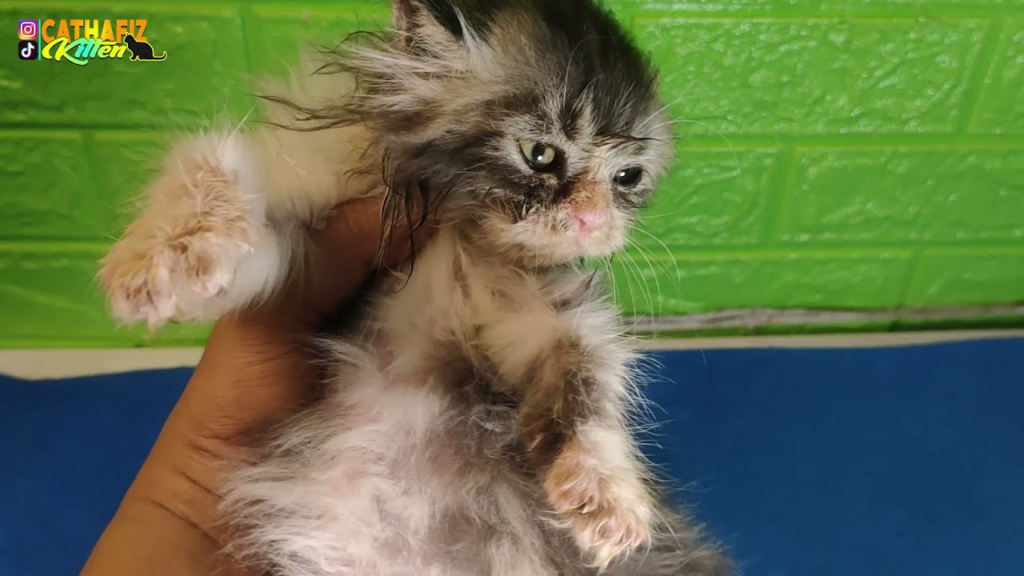 Rescuing a kitten from the street is always an emotional experience, and this tiny two-month-old kitten was no exception. When we first found her, she was small, fragile, and covered in dirt from days of wandering alone. Her fur was matted, her paws were blackened with dust, and her big eyes looked both curious and unsure. Before she could truly feel safe in her new home, there was one important step to take—her very first bath.
