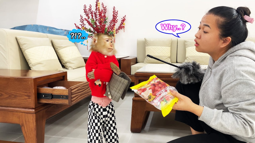 One quiet afternoon, Monkey Lyly sat beside her mother, watching her carefully count some money on the table. The notes were neatly stacked, and Lyly’s eyes followed every movement with intense curiosity. Money usually meant something important, but to Lyly, it often meant only one thing—snacks. Sweet snacks, crunchy snacks, snacks of every kind.
