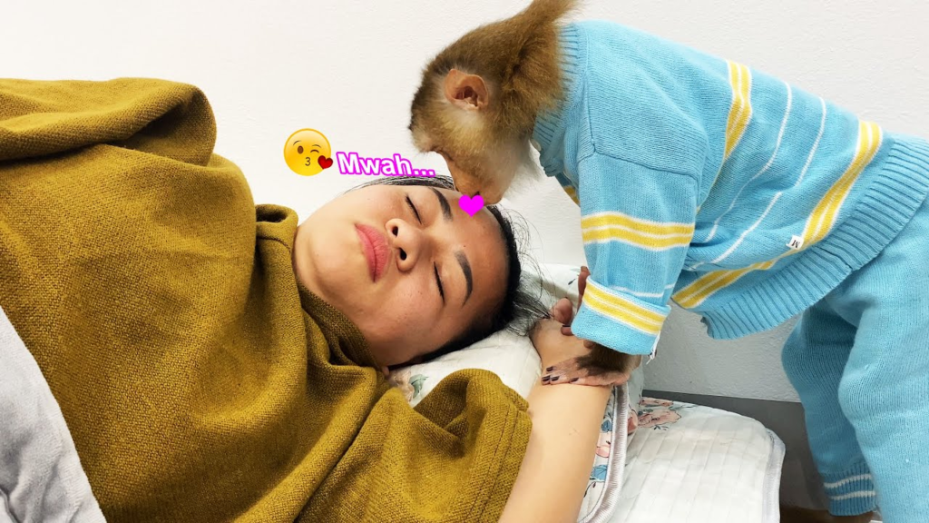 The room was unusually quiet that afternoon. Monkey Lyly sat near the bed, her small hands resting on her knees, eyes fixed on her mother’s peaceful face. This was not how Lyly usually was. Normally, she would be climbing, chattering, or tugging gently at her mother’s arm for attention. But today, she was silent—thoughtful in a way that felt new and serious.