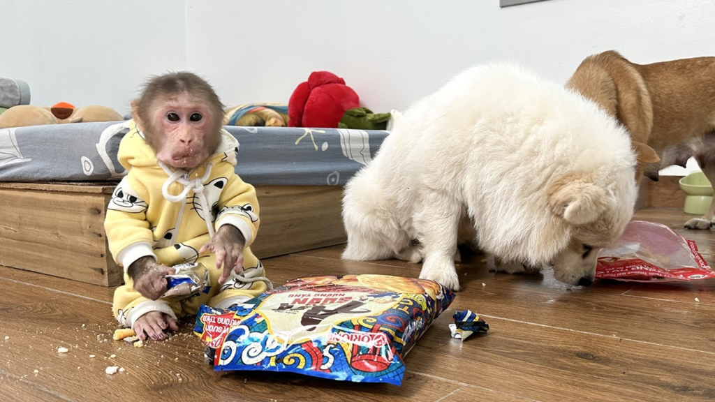 Soon, the party games began. Lala led a pretend tea party, carefully handing out cups and reminding everyone to “drink slowly.” Tun took his role very seriously, while Bon made silly faces that sent Lala into fits of laughter. The three friends shared snacks, toys, and stories, enjoying every moment together without a care in the world.