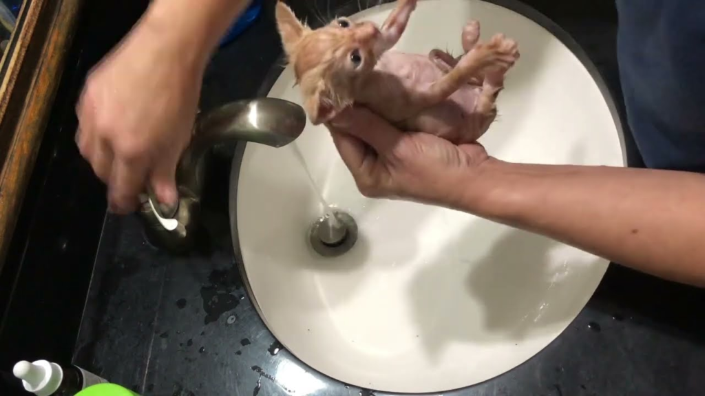 The water quickly told the story of their adventures. What started clear soon turned cloudy, revealing just how dirty the kittens had been. Each careful rinse made their fur cleaner and softer. Though the kittens didn’t enjoy the bath itself, they accepted it with surprising patience.