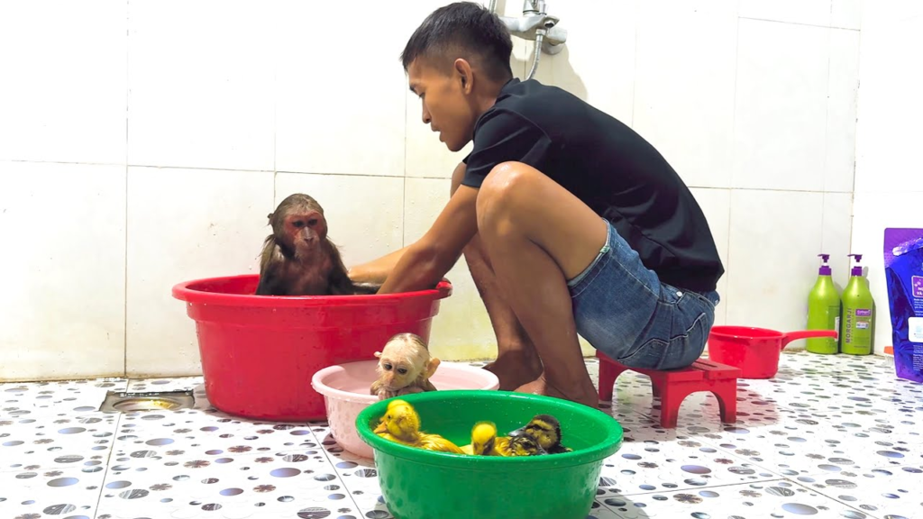 Bath time was supposed to be quick and simple. CUTIS had promised to help clean the baby ducklings, and at first, everything seemed under control. A small tub was filled with warm water, towels were ready, and the ducklings stood nearby, chirping softly. No one expected the chaos that was about to unfold.