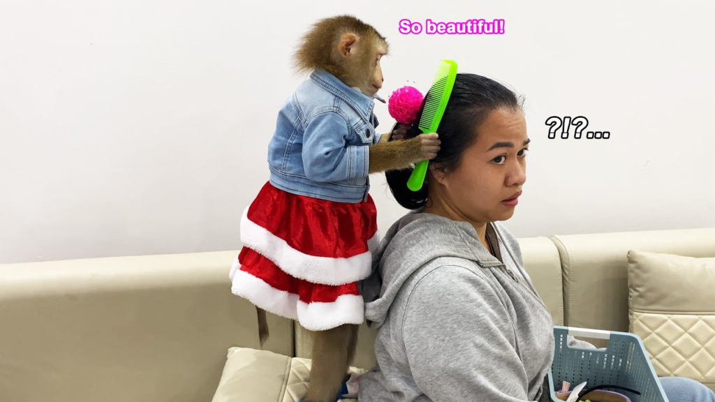 That’s Hilarious! Monkey Lyly Proactively Tied Her Mom’s Hair, and I Couldn’t Stop Laughing