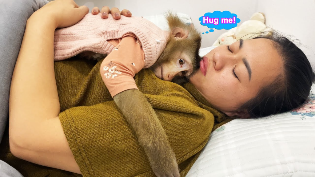 As the day slowly came to an end, Monkey Lyly began to feel the gentle weight of tiredness in her small body. After a long day full of play, curiosity, and tiny adventures, her eyes grew heavy and her movements softened. Sensing her daughter’s fatigue, Lyly’s mother opened her arms, inviting her in for a warm, comforting hug. Without hesitation, Lyly nestled close, resting her head against her mother’s chest.