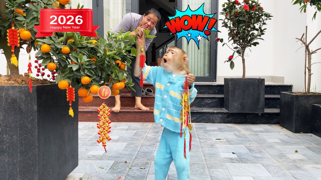 How Clever! Monkey Lyly Decorated the Kumquat Tree, Surprising Her Mother with Her Talent