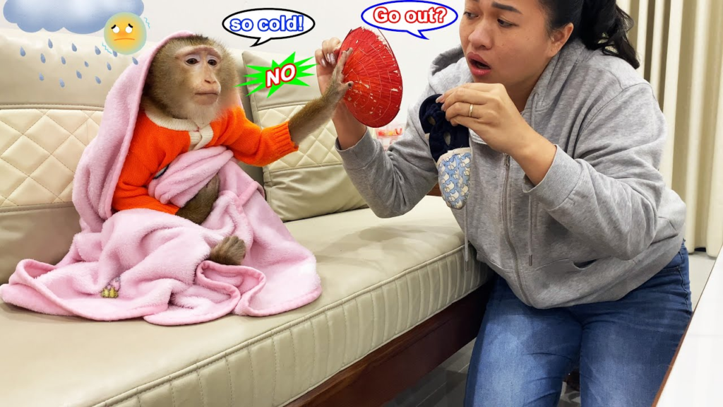 Dark clouds slowly gathered in the sky, and a strong wind began to shake the trees. From her bedroom window, Monkey Lyly watched the rain start to fall, heavy and steady. Today, she had planned to go outside to play and explore, but the storm made everything look cold and unsafe. After a moment of hesitation, Lyly sighed softly and decided it would be better to stay home.