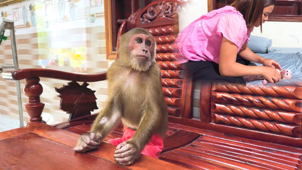 As Mom fed Baby Monkey with slow, careful motions, CUTIS stood on his tiptoes, trying to see better. He offered to help by bringing a clean cloth and gently patting Baby Monkey’s tiny hands. His serious expression and delicate movements made Mom smile. “You’re such a good helper,” she whispered, and CUTIS’ face instantly lit up with pride.
