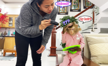 It was a hot afternoon, and little Monkey Lyly was lying lazily on the porch, hoping for something sweet and cold to make the day better. Her ears perked up when she heard the familiar sound of the freezer opening. Peeking around the corner, Lyly spotted her mother pulling out a bright pink tub of strawberry ice cream.