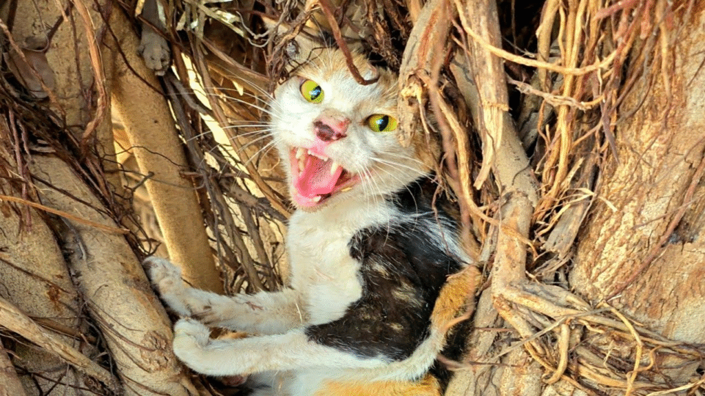 At first, neighbors tried coaxing the cat down with food and soft voices. Animal control was called. A local firefighter even extended a ladder, only for the cat to hiss and climb higher. The situation baffled everyone — until an observant teen named Lily made a discovery that turned the whole ordeal on its head.