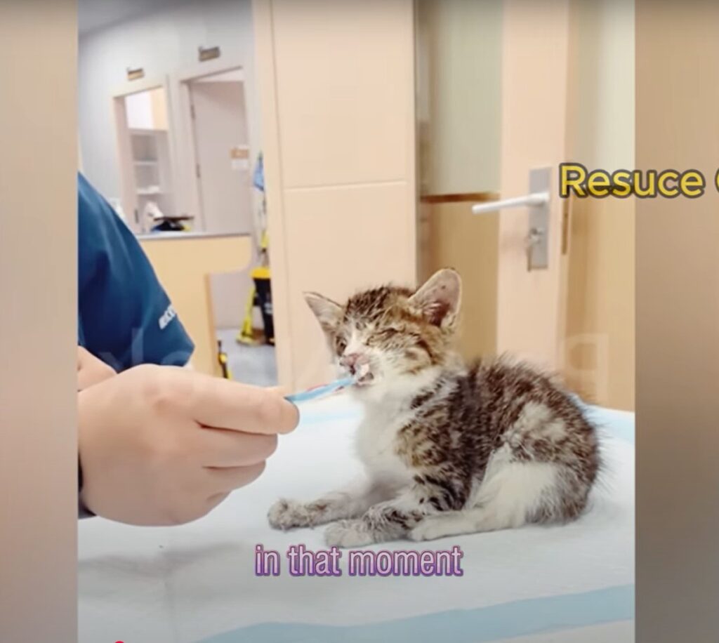 His fur was dirty and matted. His eyes, crusted shut, blinked blindly into the light. He was weak—his ribs visible, his breaths shallow—but still, he crawled. One paw at a time, dragging himself forward, meowing hoarsely.