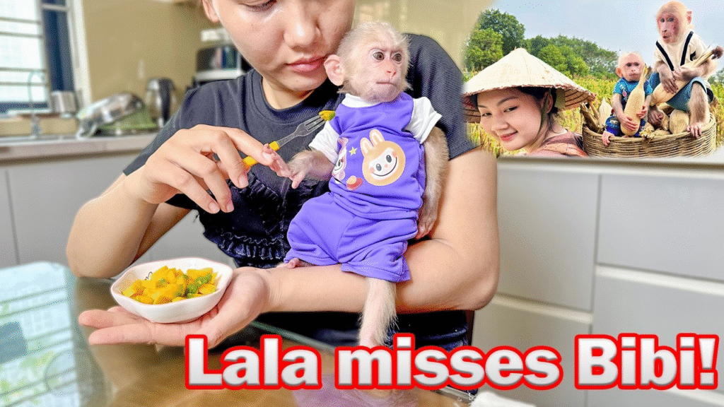 It was lunchtime at the animal care center, and everyone was gathered around to eat. All the little animals were happily munching away—except for one tiny monkey named Lala. She sat in the corner of her enclosure, arms crossed, lips pressed tightly together.