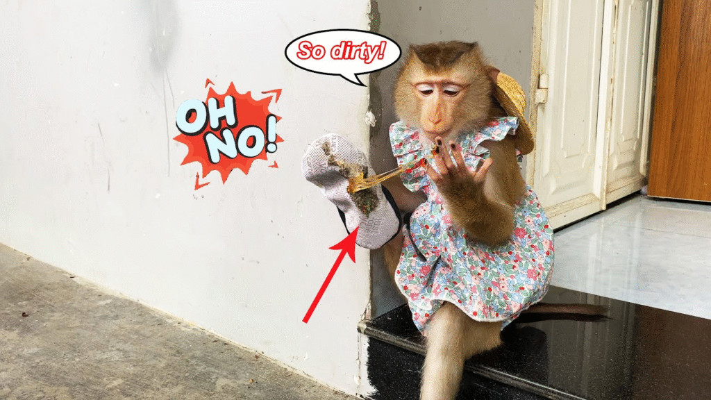It was a sunny afternoon, and Monkey Lyly was out for her usual stroll through the village, swinging her arms happily and humming her favorite tune. Everything was going perfectly—birds were chirping, flowers were blooming, and Lyly had just found a juicy banana she was saving for later. But her peaceful walk came to an unexpected, sticky halt.