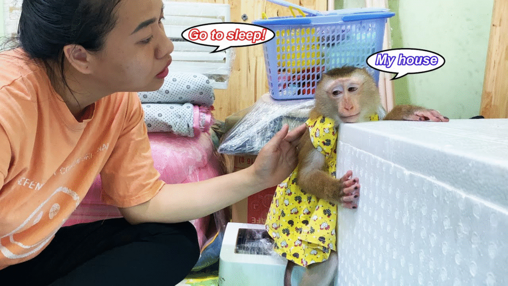 Monkey Lyly was restless and couldn’t sleep because of her last night in her beloved house.