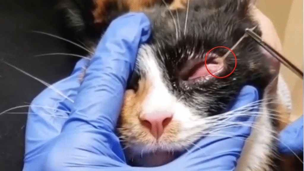 It was a heartbreaking sight when rescuers came across a stray cat squinting and trembling in pain. Her eyes were nearly shut, red, and weeping continuously. At first glance, it looked like a bad infection. But as they looked closer, they spotted something horrifying—giant foxtails lodged deep into the corners of both her eyes.