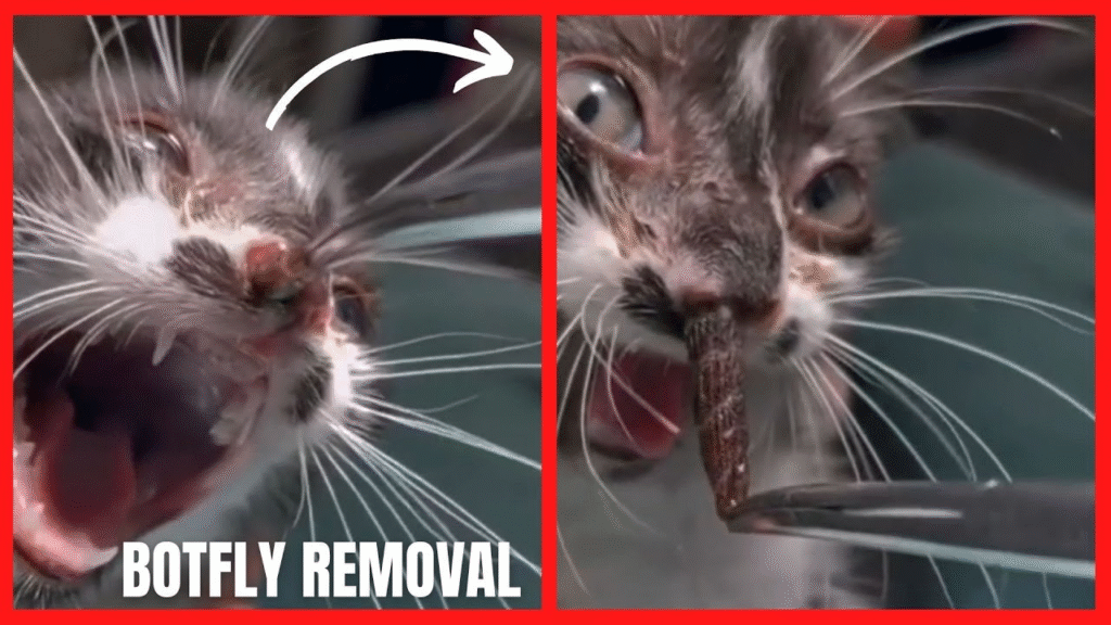 It started like any ordinary day, but something was clearly wrong with the cat. She kept scratching the same spot near her neck and showed signs of discomfort—shaking her head, grooming excessively, and refusing food. On closer inspection, the swelling had a tiny breathing hole, and that’s when the horrifying truth was uncovered: a botfly larva had made her its host.