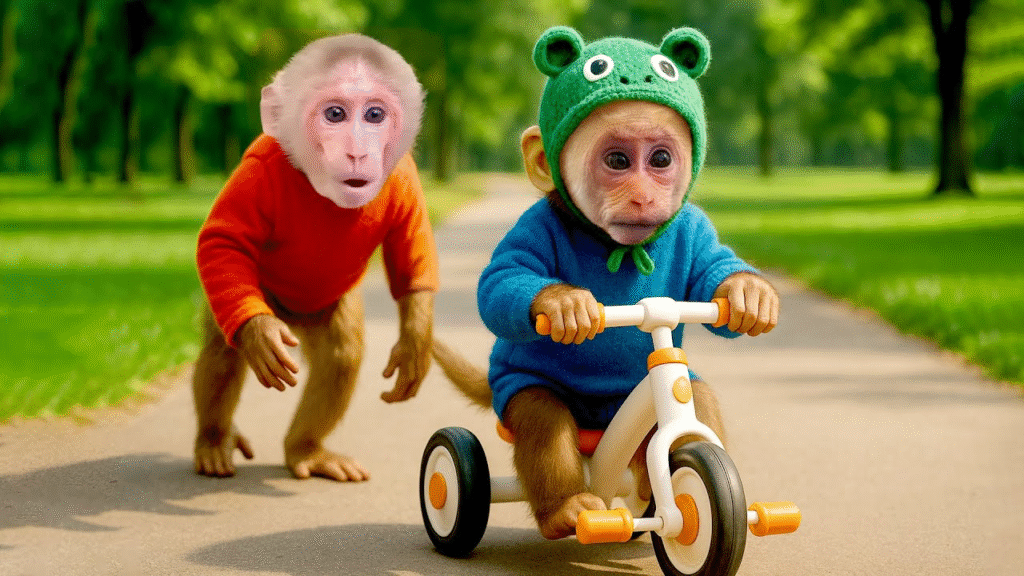 One sunny afternoon, BiBi and LaLa set out on a little adventure through the quiet back streets of their town. They had heard whispers about a hidden gem restaurant tucked away behind an old garden gate, a place said to serve the most delicious and unique dishes around. With curious eyes and hungry tummies, the two monkeys followed the scent of something truly mouthwatering.
