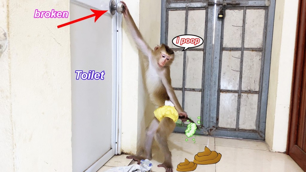 “Mom… help me! Monkey Lyly pooped while sleeping and now she’s stuck in the bathroom!”