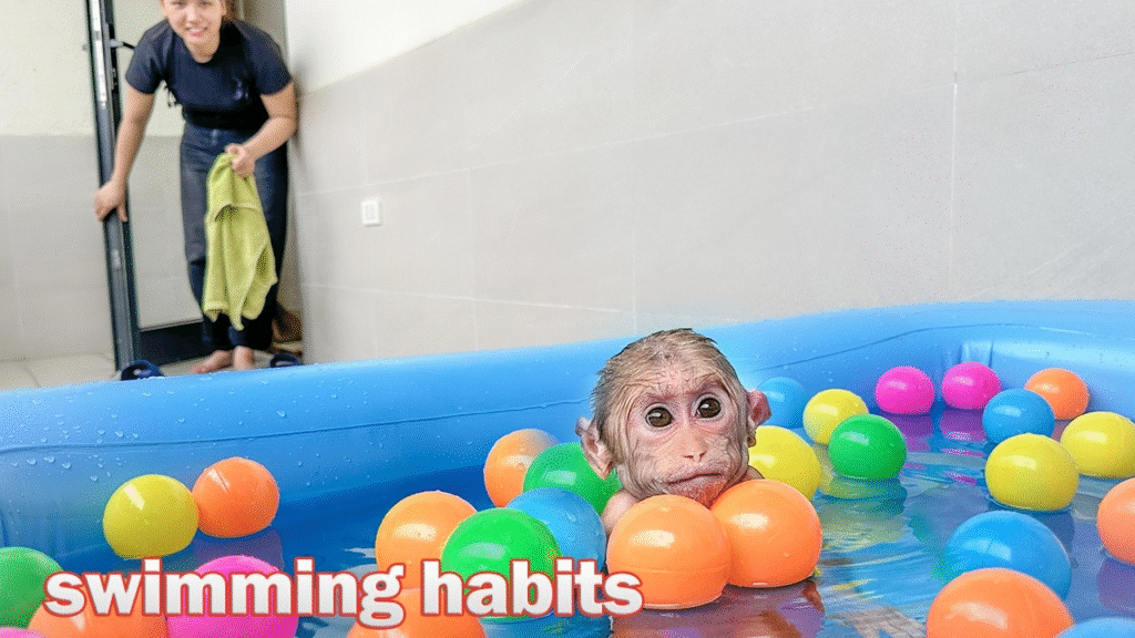 Lala was itchy because of the hot weather so Thuy took her swimming!