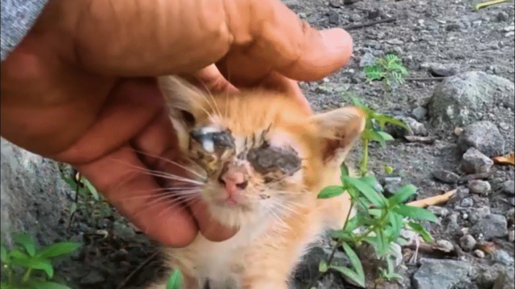 Though he may never see the world with his eyes, this kitten can still experience life in so many ways. Touch, sound, smell, and even the warmth of a loving hand can create a rich and meaningful world for him. Blind animals often develop an extraordinary ability to navigate their surroundings with confidence, especially when given patience and care.